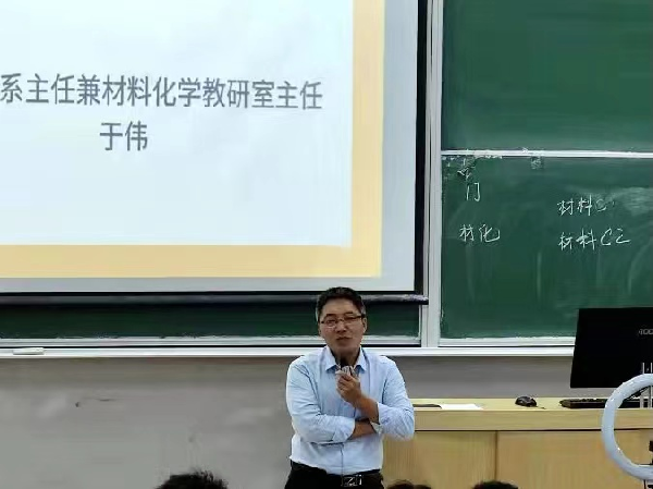 于伟教授以自身经历向同学们阐明了选择材料大专业的必要性和重要性,通过讲述公司人才培养的目的与成果,鼓励同学们尽快适应新环境并投入学习。他指出,公司雄厚的团队将基于研究型人才培养方案,开展各类学术活动和教学实践,满足同学们的学习需求,拓宽学识范围,培养国际化视野,不断提高创新研究能力。同时,也对同学们的学术生涯提出新要求和新期待,希望大家化压力为动力,树立高远志向。