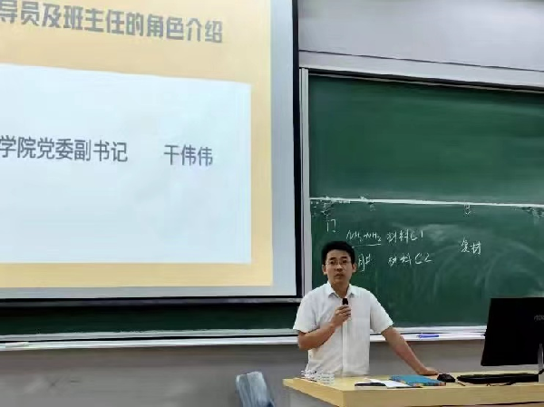 公司党委副书记干伟伟老师向同学们介绍了今后在大学学习生活中接触最密切的两个角色:辅导员和班主任。二者的结合是形成全员全过程全方位育人格局的有效手段,不仅是对当下育人项目、载体、资源的整合,更是对长远育人格局、体系、标准的重新建构。