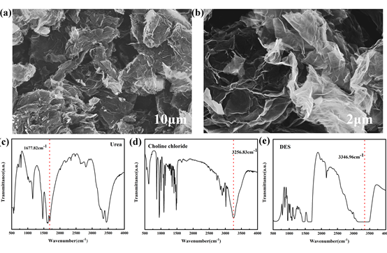 3.石墨烯的SEM和尿素、氯化胆碱、DES的红外
