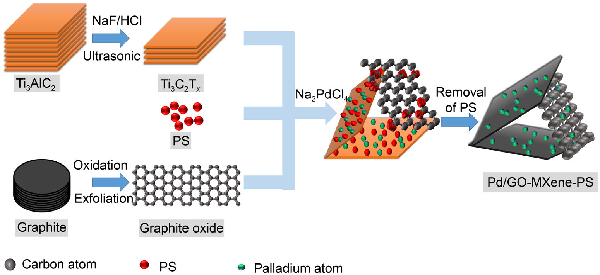 三维Pd/GO-MXene-PS的制备示意图