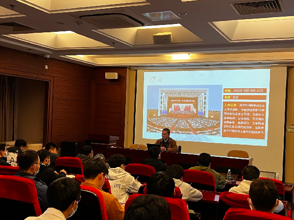 开班仪式后,马克思主义公司副教授苏勇老师为学员们作了题为“以中国式现代化推进中华民族伟大复兴”的首场报告。报告以学习宣传党的二十大精神为背景,从马克思主义中国化时代化的新境界,新时代新阶段中国共产党的中心任务,构建新发展格局,推动经济高质量发展,在团结奋斗中实现全体人民共同富裕四个方面对二十大精神进行了解析,接着讲述了党的二十大的大会主题,提出习近平新时代中国特色社会主义思想是凝心铸魂的关键;着重强调了“青年强则国家强”的意义,积极鼓励同学们加入中国共产党,为中华民族的伟大复兴贡献青春和力量。