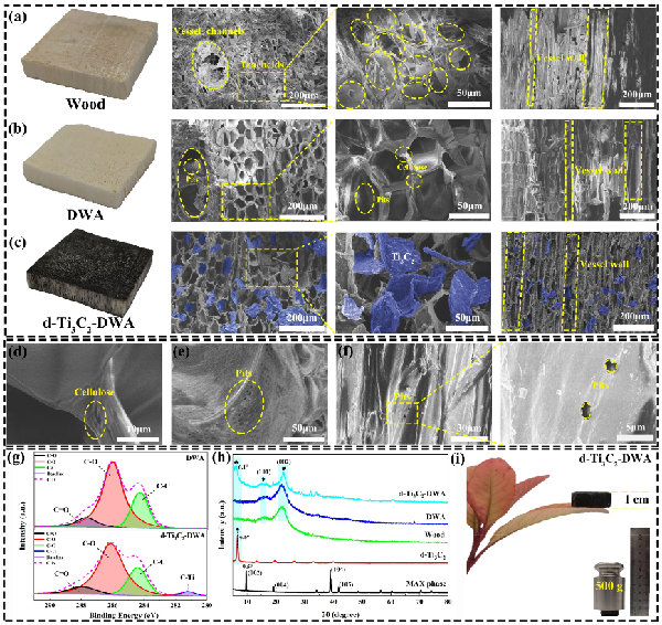 图3. d-Ti3C2、DWA、d-Ti3C2-DWA的微观表征