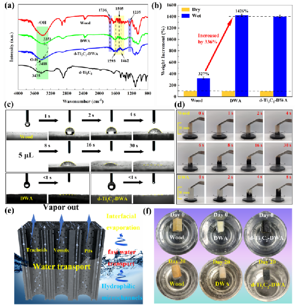 图4. d-Ti3C2、DWA、d-Ti3C2-DWA的水输运性能