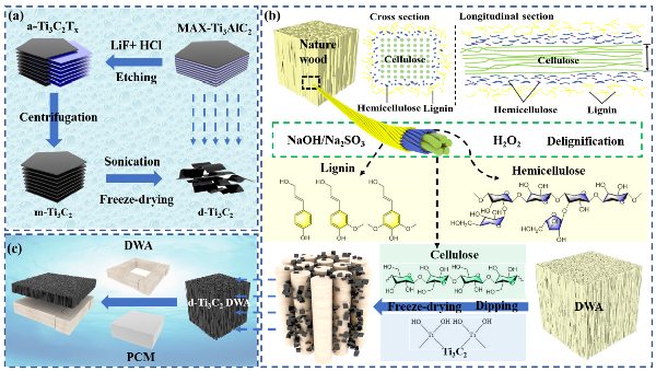 图2. d-Ti3C2、DWA、d-Ti3C2-DWA和SDIECP系统的制备过程示意图