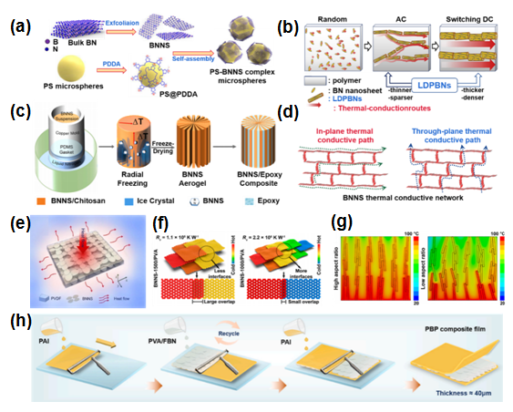 关于聚合物热导率(TC)的改进已经有一些优秀的综述,但对电绝缘性能的关注较少。一些关于导热电绝缘的综述也只是在TC的改进方面投入了较长的篇幅,而电性能的变化和绝缘的机理没有做专门讨论。为了更好地设计和开发用于电子器件散热的聚合物基材料,特别是要求电气绝缘的场所,有必要对聚合物基导热电绝缘材料的最新发展进行全面的回顾。本工作不仅回顾了材料的制备策略,还介绍了其在特定领域的实际应用。其中,制备策略从本征聚合物的结构调节和聚合物基复合材料的制备策略两个方面进行了讨论。同时,作者还在相应的制备策略中总结了每个样品的TC和电导率(EC)的变化,这将有助于为新材料的设计提供指导。应用部分则涵盖了材料的实际使用,包括微电子学、电池组等。并讨论了导热电绝缘聚合物材料面临的挑战和前景。值得一提的是,已有研究者对导热导电机制、TC预测模型和EC预测模型进行了系统的综述,本文不再赘述。
