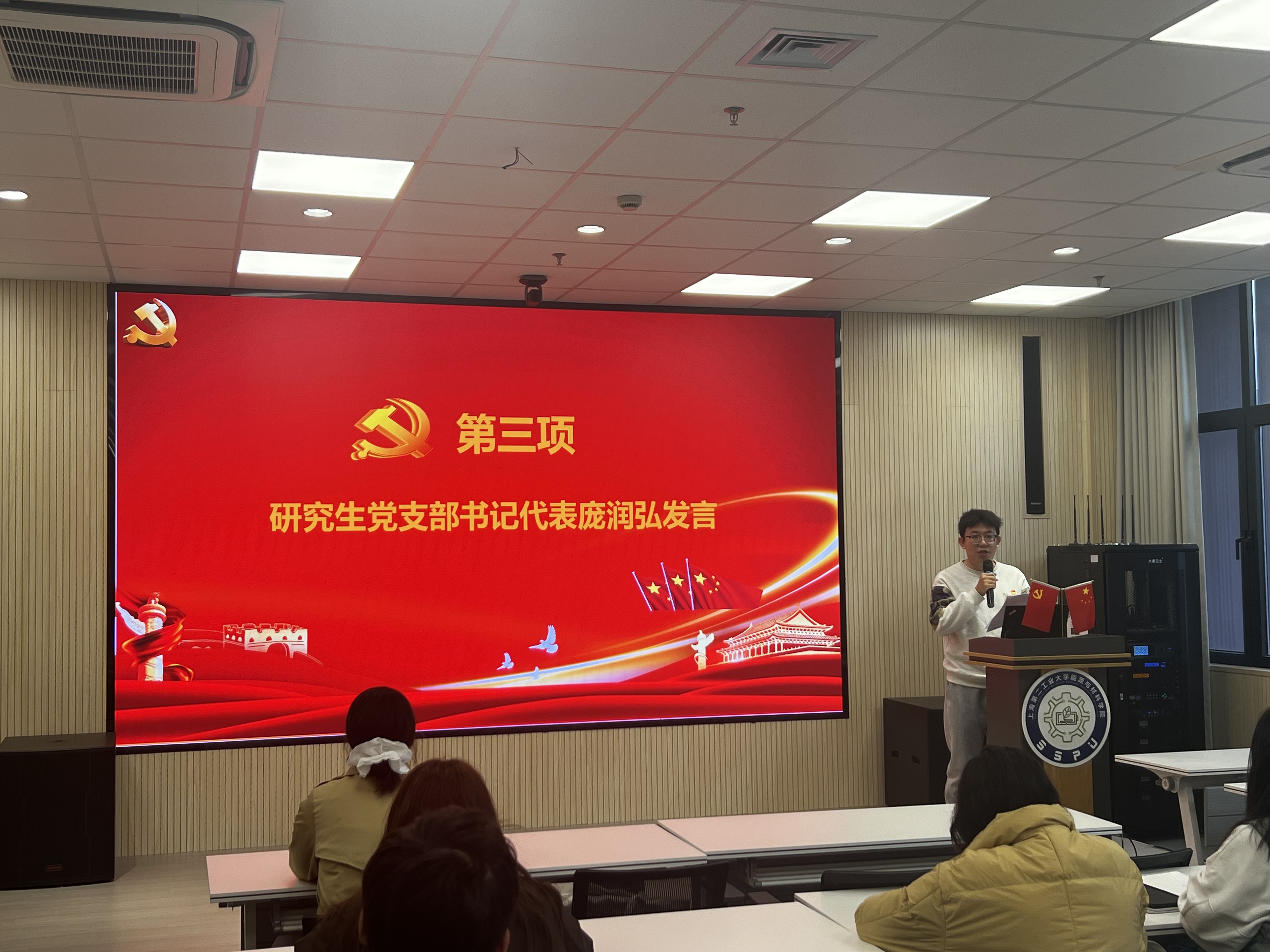 随后,研究生党支部书记代表庞润弘从思想、学习和生活三个方面分享了成为入党积极分子时的心得体会,号召同学们以优秀共产党员的标准要求自己,争取早日加入党组织。