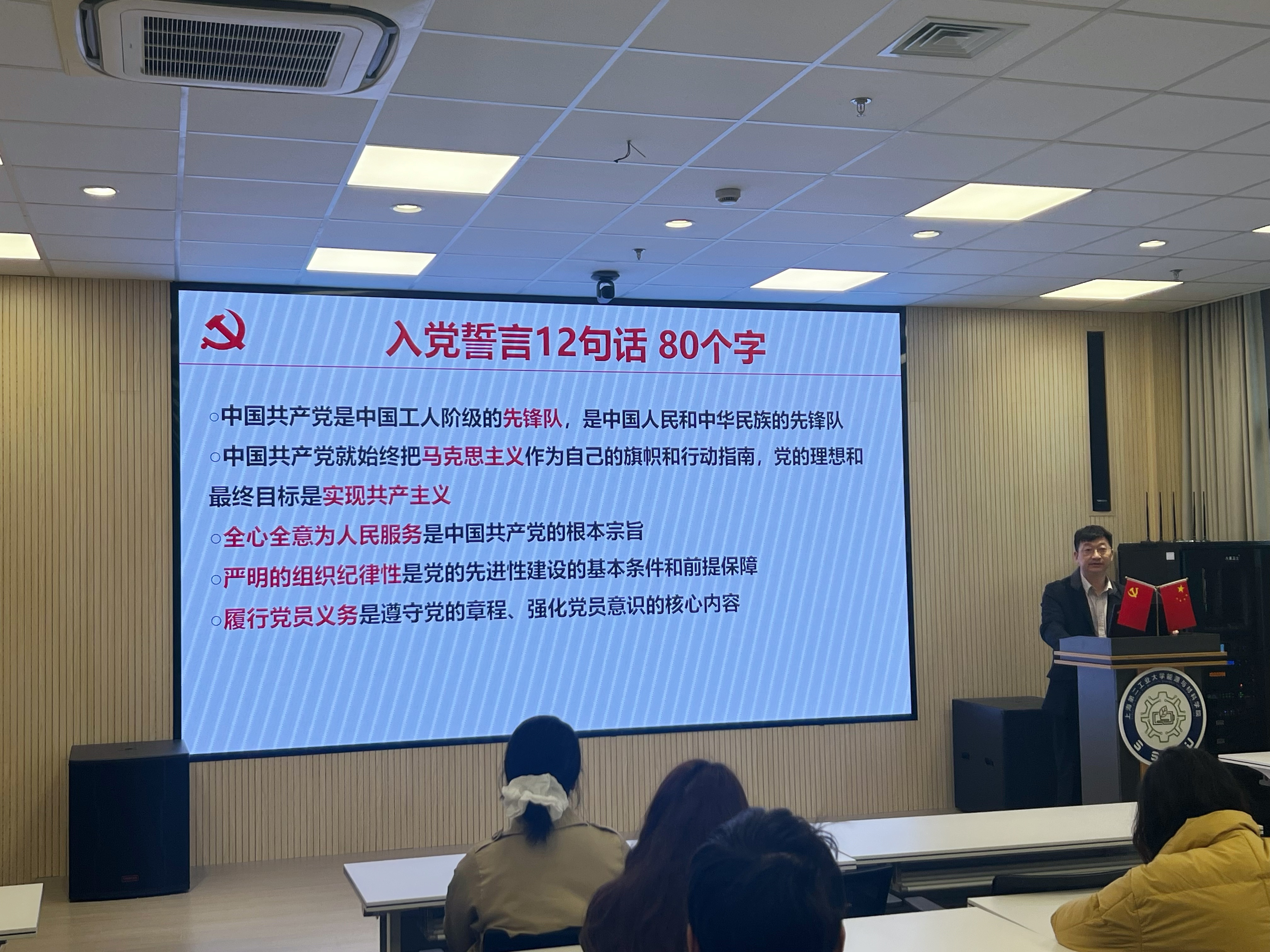 开班仪式结束后,公司党委书记陈勇对入党积极分子进行了题为“中国共产党入党誓词的演变”的专题党课辅导,陈书记以历史时间轴为主线,梳理了中国共产党入党誓词在建党初期至土地革命战争时期、抗日战争时期、解放战争时期、新中国成立以来、党的十二大以后五个历史时期的演变传承,引领着学员们穿越历史长河,以大历史观的视角,深刻洞察每个历史背景下入党誓词的深刻内涵和时代意义,陈书记在党课结尾中寄语学员们要全面、系统、科学地理解入党誓词赋予党员的使命和责任,明确入党动机,自觉接受党组织的考察和教育,坚持不懈地加强党性锻炼和党性修养,以更加饱满的热情、更加坚定的信念积极向党组织靠拢。