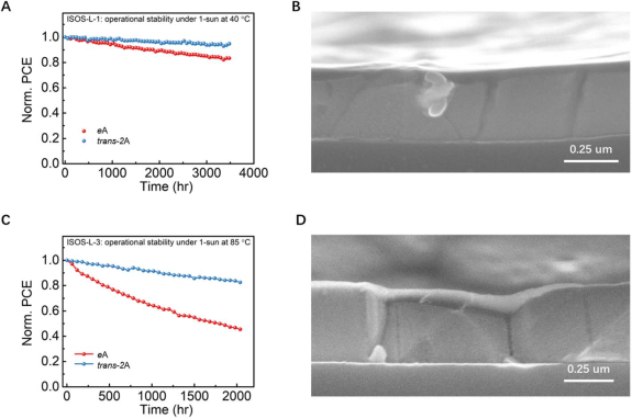 图4. 钙钛矿太阳能电池的长期稳定性表征