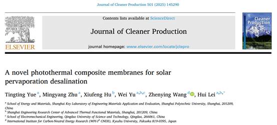 近日,公司师生在国际知名期刊Journal of Cleaner Production(JCR一区,中科院一区TOP,IF= 9.4)上在线发表了题为“A novel photothermalcomposite membranes or solar pervaporation desalination”的研究论文。论文第一作者为公司硕士研究生岳亭亭,太阳成集团122ccvip――雷晖高级工程师为通讯作者,太阳成集团为唯一通讯单位。