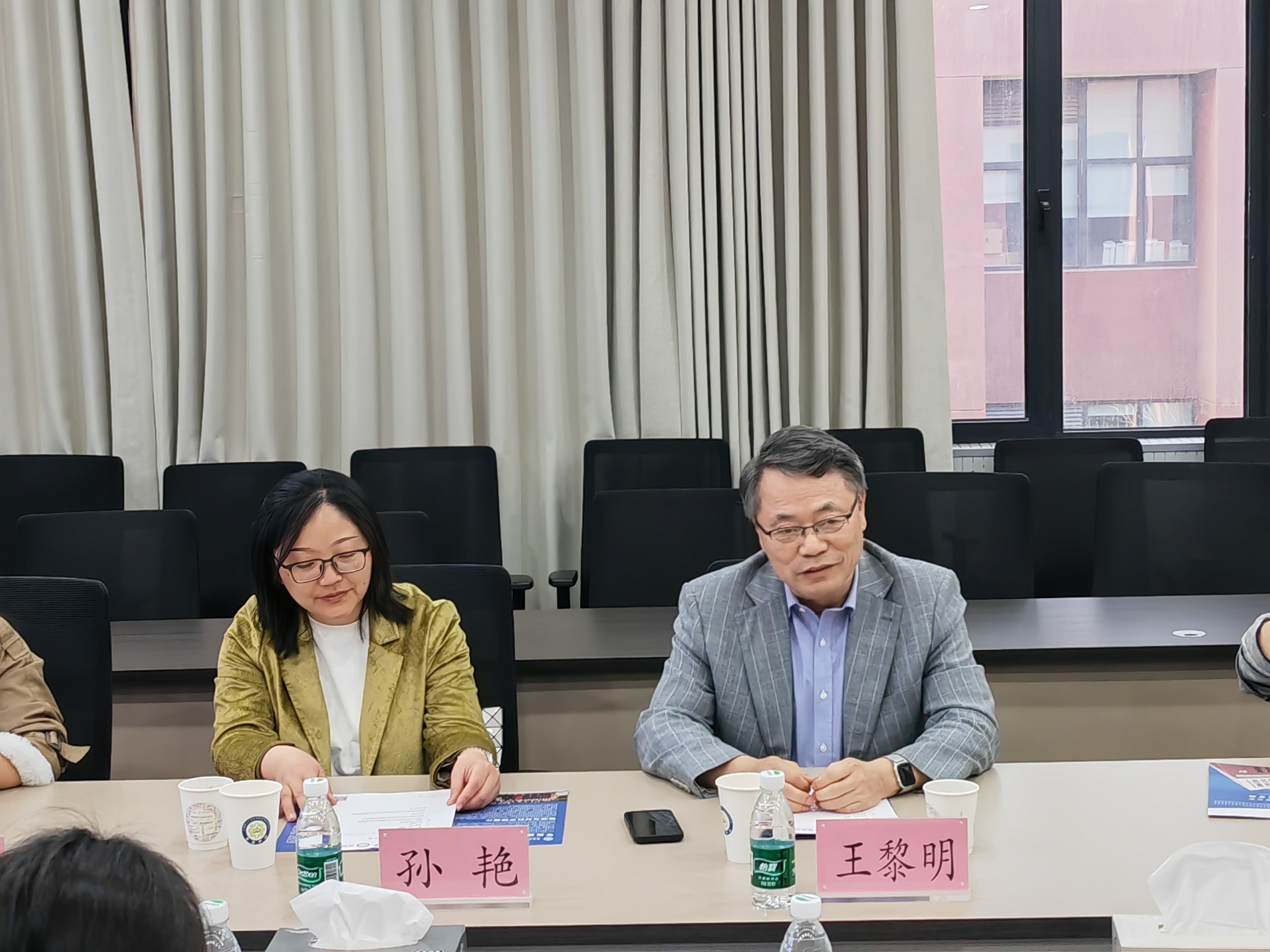 王元元对王黎明教授的到来表示热烈欢迎,并从公司架构、学科发展以及团队队伍等方面对公司情况进行了介绍。于伟介绍了公司的主要科研领域以及产学研合作情况。邹涛涛、于欢介绍了艺术与设计公司和经济与管理公司的专业建设情况以及科研情况。