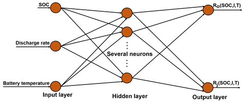 图4.用于欧姆内阻和极化内阻计算的反向传播神经网络模型图示