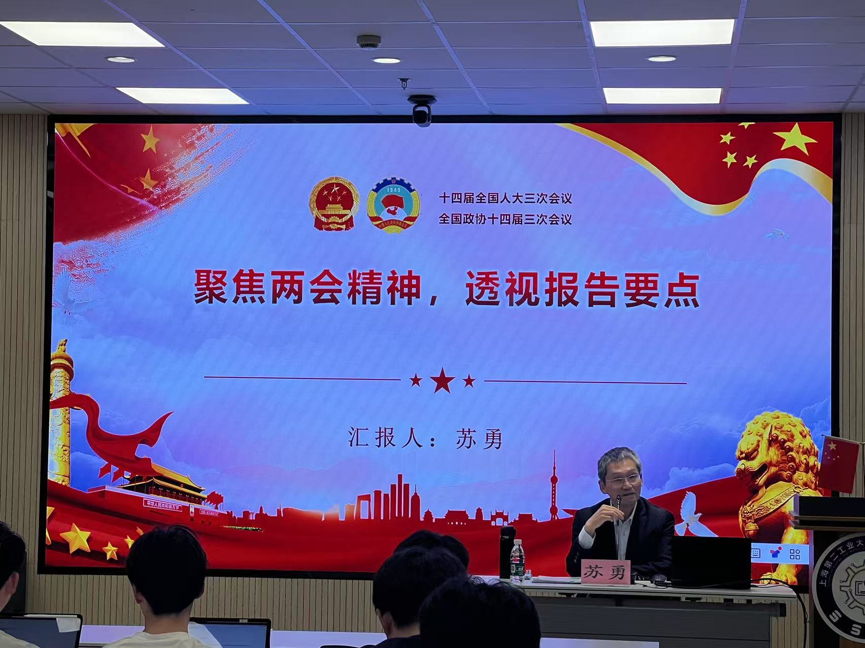 5月9日,入党积极分子理论党课第二讲邀请了马克思主义公司苏勇副教授解读《聚焦两会精神,透视报告要点》。课程运用数读报告方式,紧扣2025年政府工作报告核心内容,系统解读了2025年全国两会中的“经济社会发展”“新质生产力”“高质量发展”“民生保障”等关键议题。倡导青年一代要坚定理想信念,自觉在思想上政治上行动上同以习近平同志为核心的党中央保持高度一致,全面提升自己的综合素质和能力水平,为社会发展贡献力量。