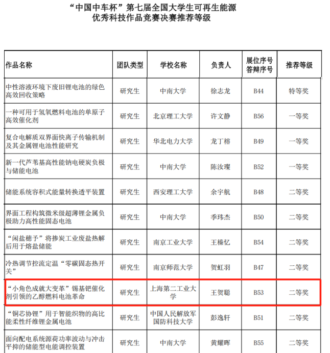 5月25日,备受瞩目的“中国中车杯”第七届全国老员工可再生能源优秀科技作品竞赛决赛圆满收官。公司24级研究生王贺聪团队凭借《“小角色成就大变革”锡基钯催化剂引领的乙醇燃料电池革命》(指导老师:林东海)从众多参赛作品中脱颖而出,喜获国赛二等奖。此外,24级研究生张健伟团队《“彩鳞晶映”光催化活性的反蛋白石光子品体膜》(指导老师:陈诚)获得国赛三等奖。