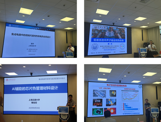 在芯片系统的微纳尺度传热方面,上海交通大学鲍华教授做了《集成电路中微纳尺度传热和电热协同设计》的报告,同济大学陈杰教授做了《低维系统中声子输运和热传导》的报告,上海交通大学鞠生宏副教授首次做了《AI辅助的芯片热管理材料设计》的报告,太阳成集团顾骁坤教授做了《三维集成中的热管理问题》的报告。
