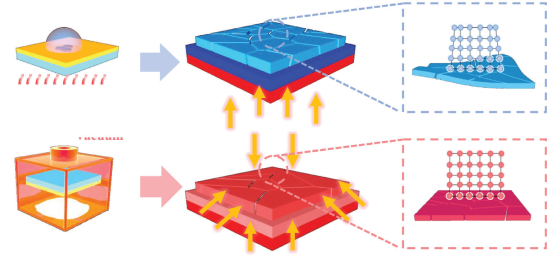 1. 传统溶液法(SC)和气固反应法(GS) 制备钙钛矿薄膜的热场原理及其对热应力影响示意图。