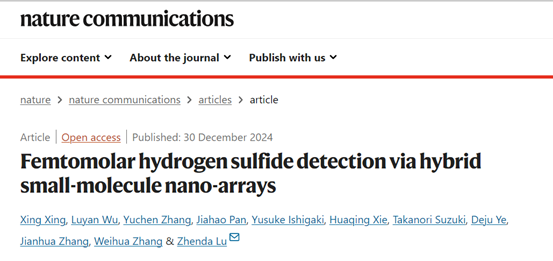 Recently, a research paper titled Femtomolar Hydrogen Sulfide Detection via HybridSmall-Molecule Nano-Arrays was published in Nature Communications, a top international comprehensive journal, and Xing Xing is the first author of the paper. Professor zhenda lu of nanjing university is the corresponding author of the paper.
