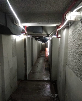 本工程位于重庆南路139号,在重庆南路东侧,上部为黄浦区人民代表大会委员会。工程大概为上世纪八十年代早期,由于工程建成时间较长,局部存在漏水点。根据现场勘查发现,地下室长期处于封闭状态,顶板、外墙均有滴水渗漏点,地下室中部顶板有一条裂缝及密集渗水点的房间,常年漏水。东端漏水较为严重,现场观察墙面漏水点腐蚀严重,涂料脱落,变色。